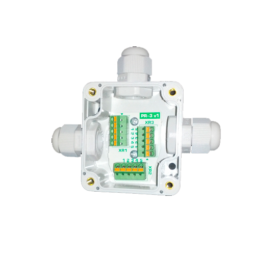 Разветвитель изготавливается в герметичном пластиковом корпусе и оснащен кабельными вводами PG9. Подключение жил кабелей осуществляется пружинными клеммниками Push-In типа SPTA 1/ 5-3,5 производства Phoenix Contact.