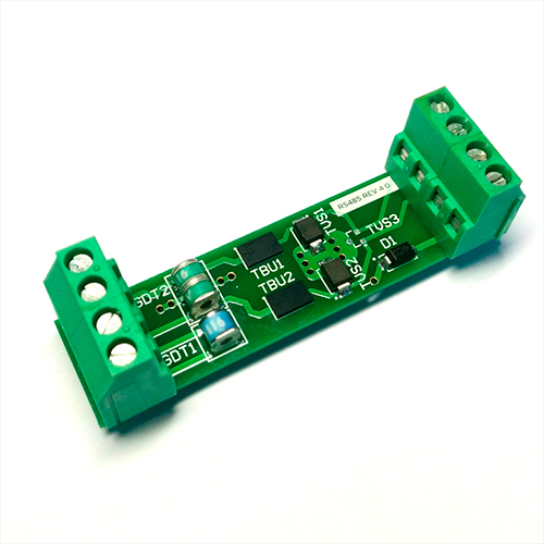 Устройство защиты линии RS485 от импульсных напряжений предназначено для защиты телекоммуникационного оборудования с интерфейсом RS485 от импульсных помех, вызванных грозовыми разрядами, а также от электростатических разрядов. Отличительно особенностью устройства является использование технологии сверхбыстродействующей защиты по току производства компании Bourns. Данные модули обеспечивают непревзойденную защиту как по току, так и по напряжению и не имеют каких-либо аналогов, представленных на рынке. В качестве первичной защиты используются специальные разрядники с большим значением разрядного тока с формой 8/20 и обладающие высокой скоростью срабатывания. Каскад тонкой защиты выполнен на дискретных однонаправленных TVS-диодах. В качестве корпусных и установочных изделий используется продукция Phoenix Contact. Все элементы данного устройства обладают большим сроком службы и высочайшей надежностью.