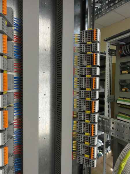 В качестве клеммных зажимов используются клеммы, как правило фирмы Phoenix Contact, но по требованию возможно изготовление с клеммами других производитлей - Weidmuller, Wago, Klemsan и др. Клеммы могут быть проходные, с размыкателями. Дополнительно может устанавливаться шина для заземления экранов кабелей.