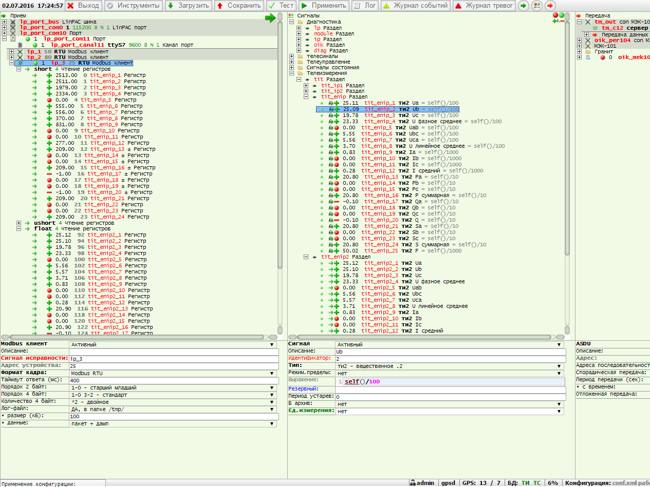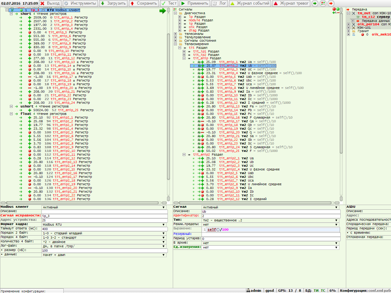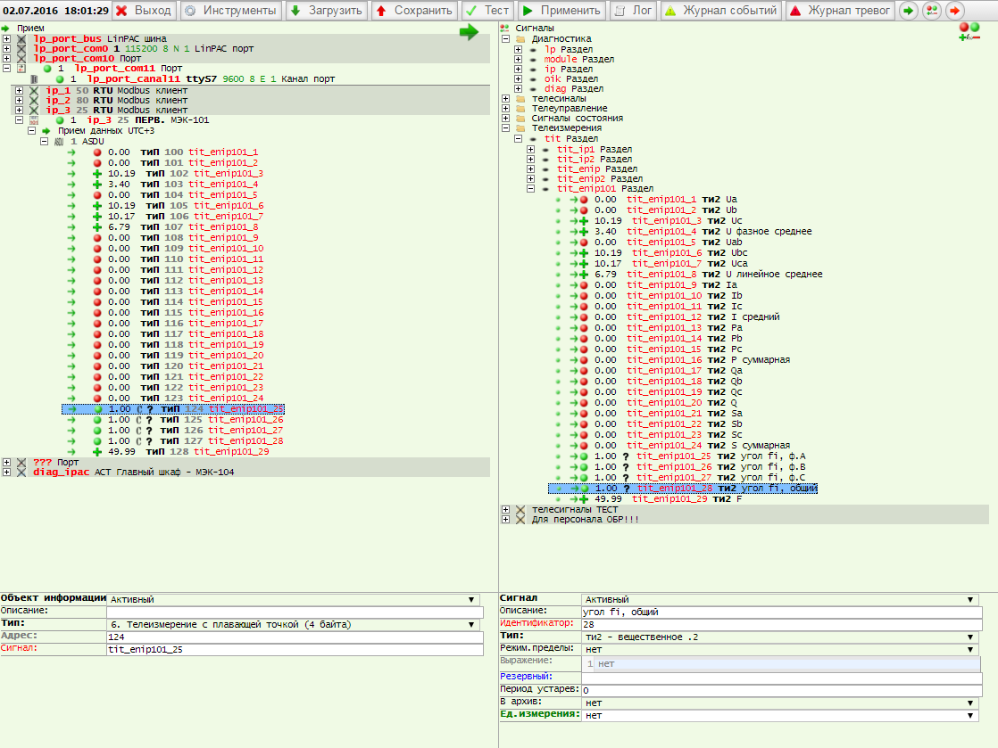 Чтение данных производится функцией 4 с адреса 92 в формате float, таким образом, чтобы не вносить дополнительные коэффициенты для пересчета телеизмерений.